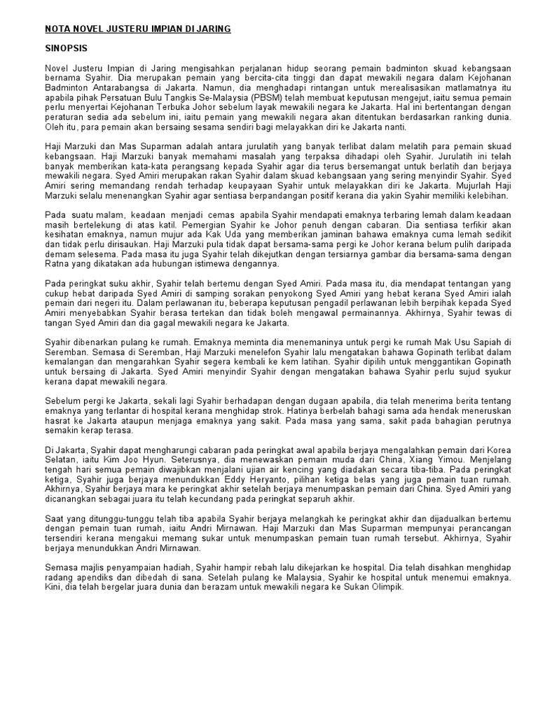 Nota Ringkas Novel Justeru Impian Di Jaring Karya Zaid Akhtar Pdf