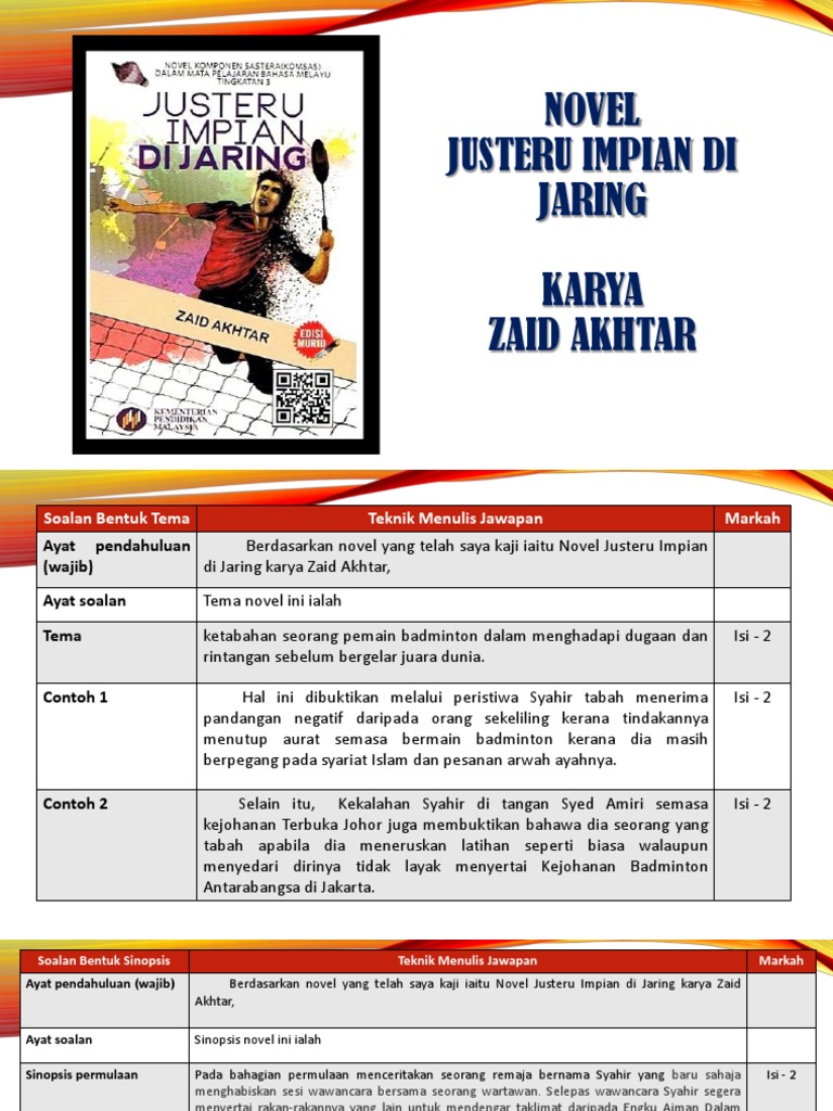 Sinopsis Tema Persoalan Pengajaran sebagai rujukan untuk semua. Contoh jawapan tema persoalan nilai murni pengajaran watak utama watak antagonis latar tempat latar masa latar masyarakat. Contoh soalan novel justeru impian di jaring sinopsis contoh soalan novel justeru impian di jaring bab contoh soalan novel justeru impian di jaring pengajaran.